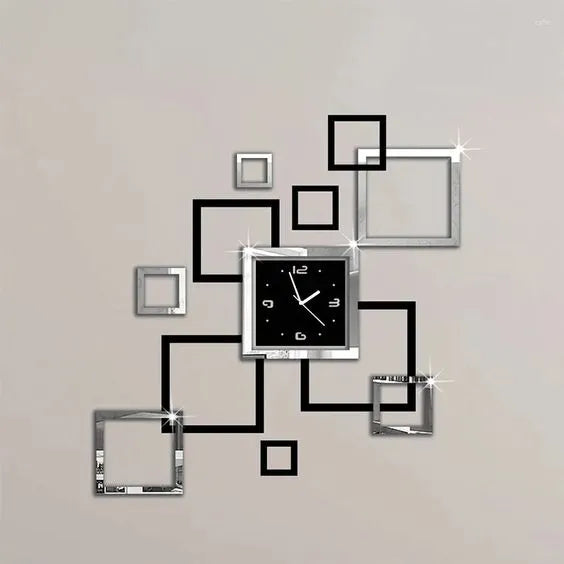 This 3D DIY Acrylic Wall Clock is a modern and creative addition to any living room. The clock features a square mirror design with a wooden frame, giving it a unique and stylish look. The clock is available in two color options, Golden Black or Silver Black, allowing you to choose the perfect match for your home decor. The clock is made of high-quality acrylic material and runs on quartz movement, ensuring accurate timekeeping. This clock is easy to install and will add a touch of elegance to any room. Perfect for those who appreciate modern design and functionality.