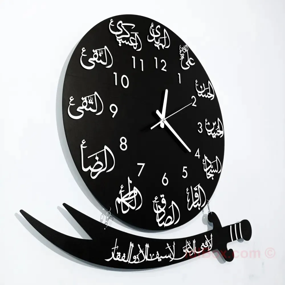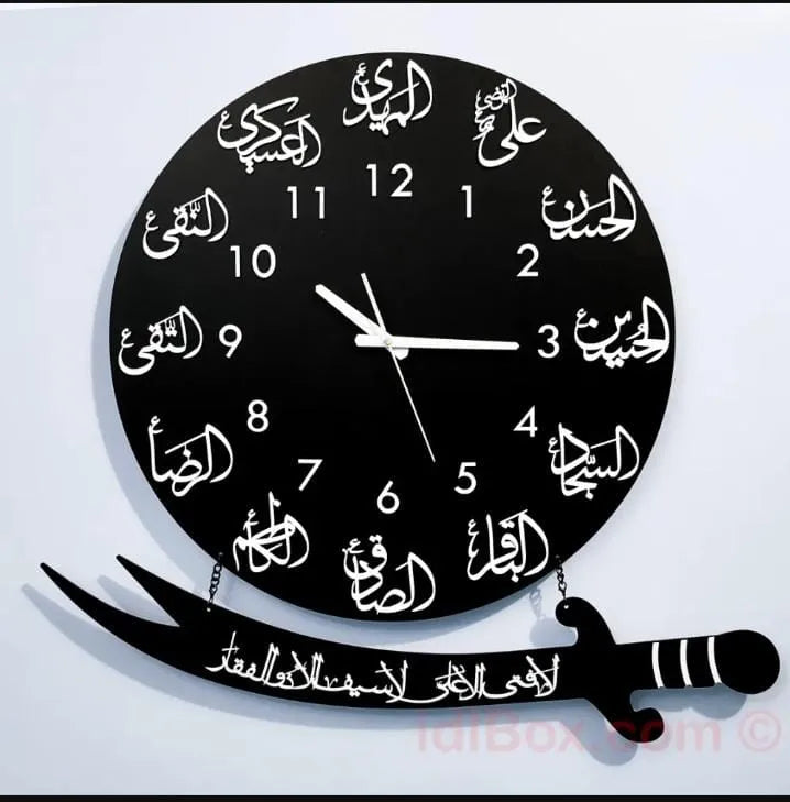 Product details of 3D laser Cut wooden 12 imam names wall clock ,Best big size wall clock ,Wall clock for living room and best for gift ,beautifull wooden clock for home decor