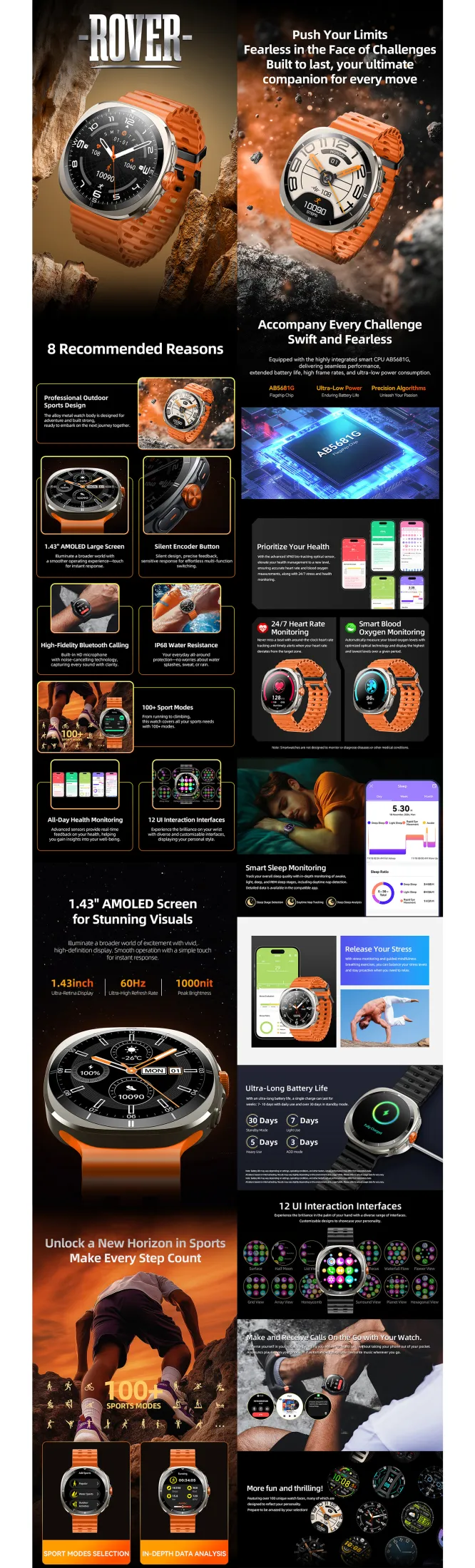 Experience next-generation innovation with the Login L-106 Rover Smart Watch, featuring a stunning Ultra Retina HD Display (1000nit) that stays sharp and bright even under direct sunlight.