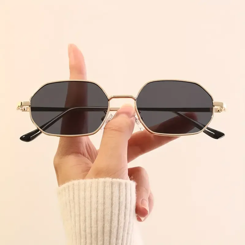 Product details of BestWear Retro Vintage Hexagon Metal Sunglasses For Women - Lightweight Octagon Shape Irregular Frame Sun Glasses For Girls & Boys - UV400 Fashion Shades for Girls